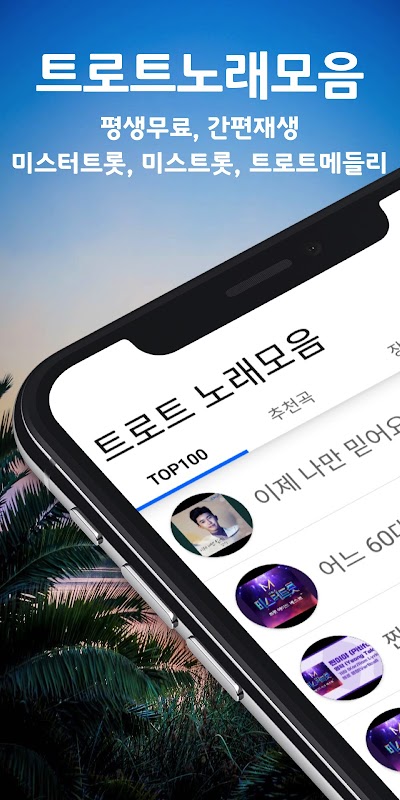 트로트 명곡부터 트로트 메들리까지 최고의 인기곡들을 손쉽게 한번의 터치로 연속재생할 수 있습니다.