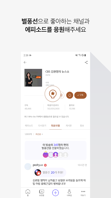 - 녹음하기 : 모바일 기기에서 쉽게 녹음하여 에피소드를 만들 수 있어요.