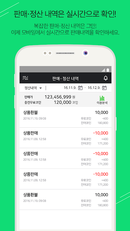 - 복잡하던 판매∙정산 내역을 앱으로 간편하게 확인할 수 있어요.