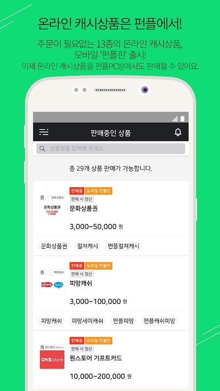 ▶주문이 필요없는 13종의 온라인 캐시상품, 모바일 '펀플핀 판매