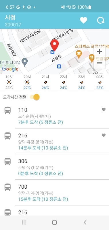 ※ বাসের আগমনের তথ্য প্রদর্শিত হলে পছন্দসই হিসাবে নিবন্ধিত বাস রুটগুলি শীর্ষে স্থিরভাবে প্রদর্শিত হয়।