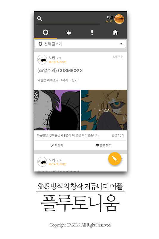 - 플루토니움 어플은 채널 좀비왕 정식 멤버들의 연재물을 다른 공간에서 보다 빠르게 만나실 수 있습니다. 플루토니움 어플 사용자만의 특권을 누리세요.