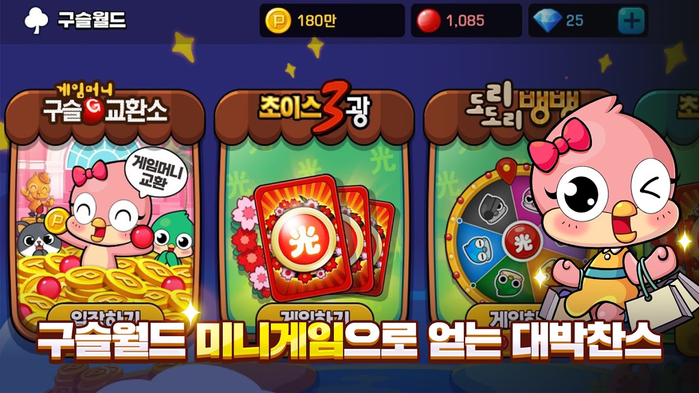 - চয়েস 3 গোয়াং এবং ডোরি ডোরি ব্যাং ব্যাং এর মতো গুসেউল ওয়ার্ল্ডের মিনিগেমগুলির সাথে একটি বড় জয়ের লক্ষ্য রাখুন!