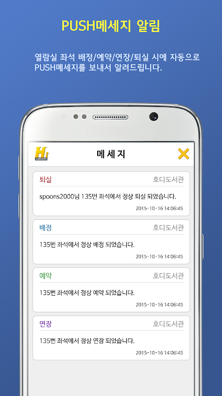 - 가입된 도서관 내에 비콘을 검색하여, 열람실 좌석 배정 / 예약 서비스가 가능합니다.