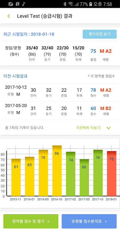 - 학생출결, 단어시험결과, 숙제검사결과, 모의테스트 결과 및 학원의 안내사항을 보실 수 있습니다.