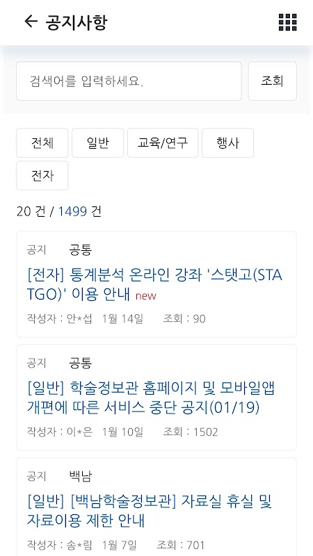 - আমরা Baeknam একাডেমিক ইনফরমেশন সেন্টার এবং ERICA একাডেমিক ইনফরমেশন সেন্টারের জন্য সিট অ্যাসাইনমেন্ট এবং সুবিধা সংরক্ষণ পরিষেবা প্রদান করি।