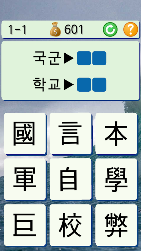 - নিদিষ্ট সময় অনুভূমিক এবং উল্লম্ব তির্যক চলন্ত চীনা বা hanjaeum খুঁজে বের করার খেলা।