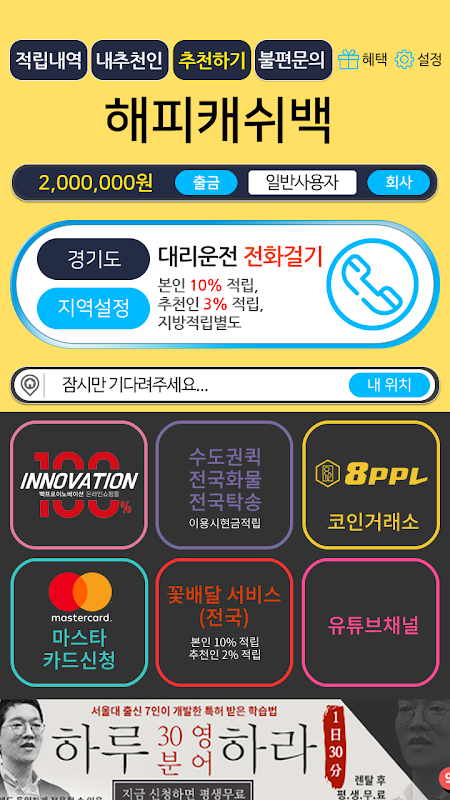- 추천한 친구가 대리호출시 3%도 내게로 적립~