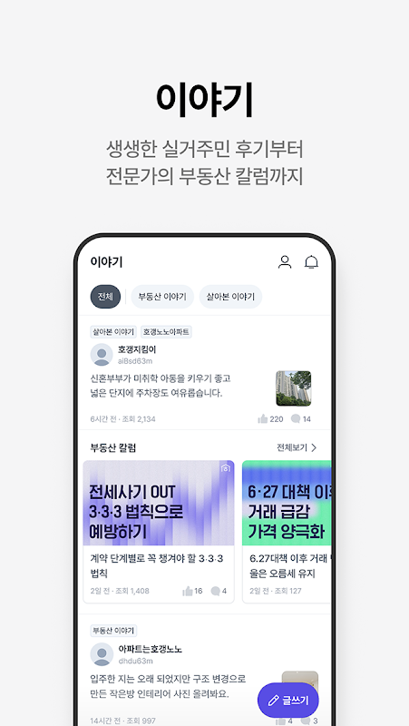 Hogangnono শুধুমাত্র স্থানীয় পুনর্গঠন/নিলামের তথ্যই প্রদান করে না, কিন্তু বাস্তব জীবনের গল্পের মাধ্যমে বিভিন্ন অ্যাপার্টমেন্ট পুনর্গঠন/নিলামের তথ্যও প্রদান করে।
