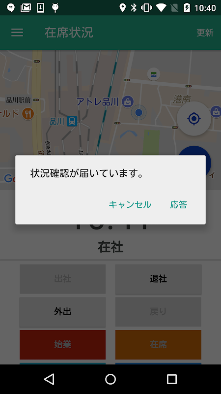 通知を受信して状況確認に応えることで、勤務状況を簡単に報告することが可能です。