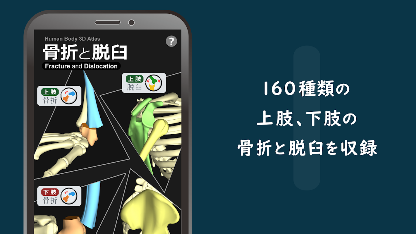ফ্র্যাকচার এবং বিশৃঙ্খলা শিখতে একটি অ্যাপ্লিকেশন যা 3 ডি সিজি মডেল এবং অ্যানিমেশন সহ উপরের এবং নিম্ন অঙ্গগুলির ফ্র্যাকচার এবং বিশৃঙ্খলা পুনরুত্পাদন করে।