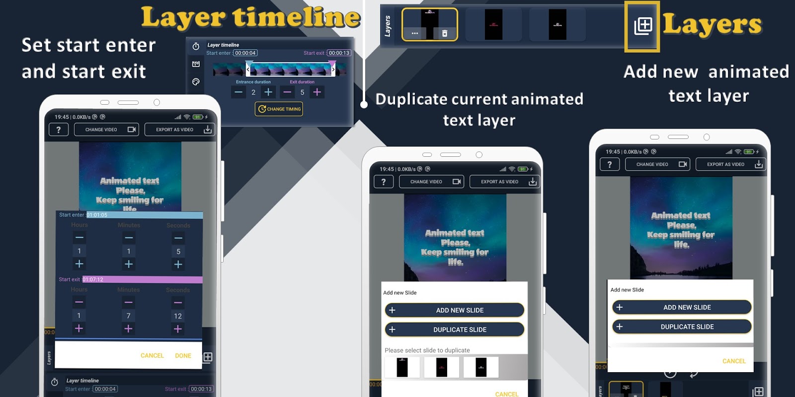 Anima অ্যানিমেটেড টেক্সট যুক্ত করুন - পাঠ্য-বদলের সময়রেখা পরিবর্তন করুন (এন্ট্রি শুরু করুন - প্রস্থান প্রস্থান করুন) সময়।