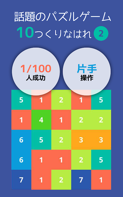 パズルゲームアプリ「10をつくりなはれ。」隣り合う数字を合体して10に達成で成功。自分の限界への挑戦。定番数字パズルゲーム。シリーズ累計200万ダウンロード突破