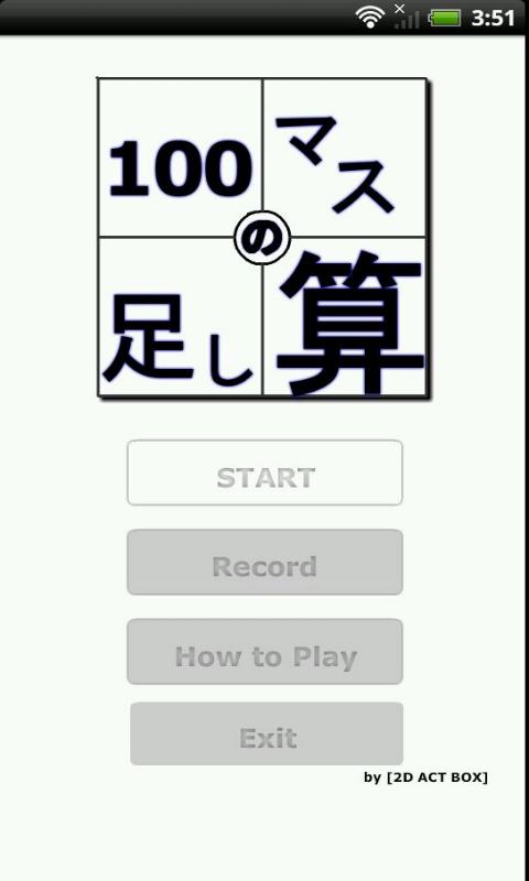 上部分と左部分にランダムに並べられた0から9の数字の交差する場所のマス目を足し算をして、100マス全てを埋めていくアプリです。