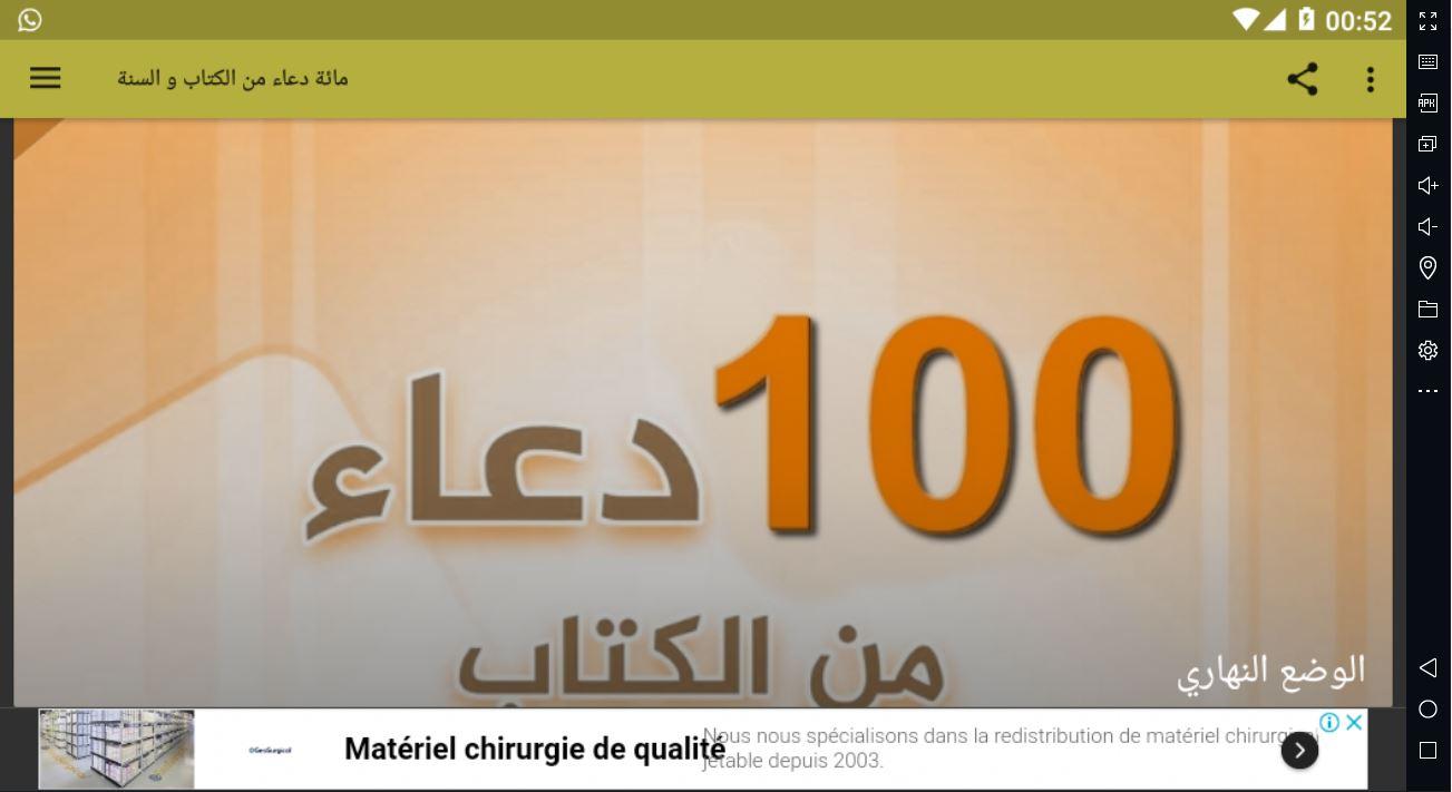 يحتوي التطبيق 100 دعاء من الكتاب و السنة الصحيحة على مختصر من الأدعية التي يحتاجها المسلم في حياته اليومية، فيه اختيارات من الآيات، جمع للروايات و مراعاة للأولويات في سؤال رب الأرض و السماوات.