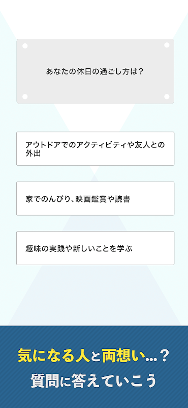 আপনি কি আপনার গভীর মনোবিজ্ঞানে কটাক্ষপাত করতে চান? এটি এমন একটি গেম যেখানে আপনি বিকল্পগুলি নির্বাচন করতে পারেন এবং সামঞ্জস্যপূর্ণ ভাগ্য-বলা এবং প্রেম নির্ণয়ের মতো মনস্তাত্ত্বিক পরীক্ষাগুলি সম্পাদন করতে পারেন৷
