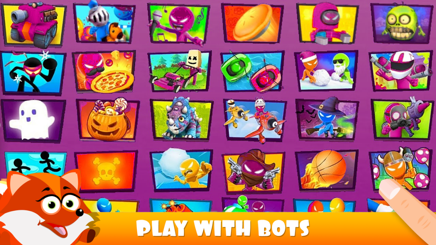 মিনিগেমস 2 3 4 প্লেয়ার, পার্টি গেমস সংগ্রহ থেকে 2 3 4 খেলোয়াড়দের জন্য দুর্দান্ত মাল্টিপ্লেয়ার মিনি গেমগুলিতে আপনি 2 3 4 খেলোয়াড়ের সাথে খেলতে পারেন, তবে আপনার যদি আরও বন্ধু বা পরিবার থাকে এবং আপনি 2, 3 বা 4 খেলোয়াড় হন চ্যালেঞ্জ 3 খেলোয়াড় বা 4 খেলোয়াড়। এই প্রতিযোগিতামূলক মাল্টিপ্লেয়ার মিনি গেমের সাথে মজা করুন। সেই সময়গুলির জন্য যখন আপনি একা থাকেন, বটের বিরুদ্ধে 2 3 4 প্লেয়ার মোডে খেলুন এবং সেরা হওয়ার জন্য আপনার দক্ষতা উন্নত করুন৷ খেলার জন্য আপনার ইন্টারনেট সংযোগের প্রয়োজন নেই। 2 3 4 প্লেয়ারের জন্য বিনামূল্যে মিনি গেমের জন্য অফলাইনে খেলুন!