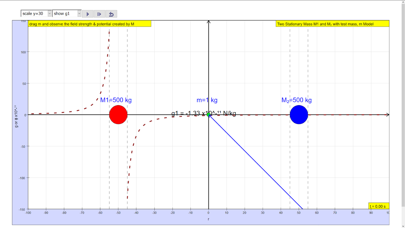 2 ভর মাধ্যাকর্ষণ 1D ভার্চুয়াল ল্যাব, সিঙ্গাপুর সিমুলেশন একটি ওপেন সোর্স পদার্থবিদ্যা