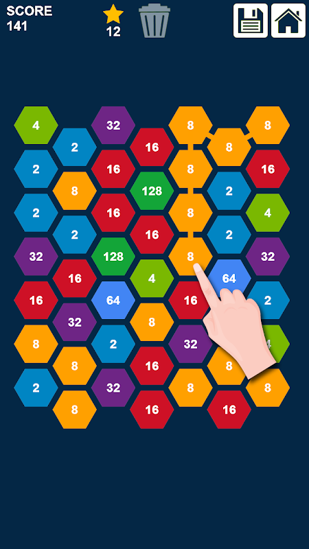 Enjoy this mix of 2048 puzzle, hexagon puzzle, number merge and match-3 games.