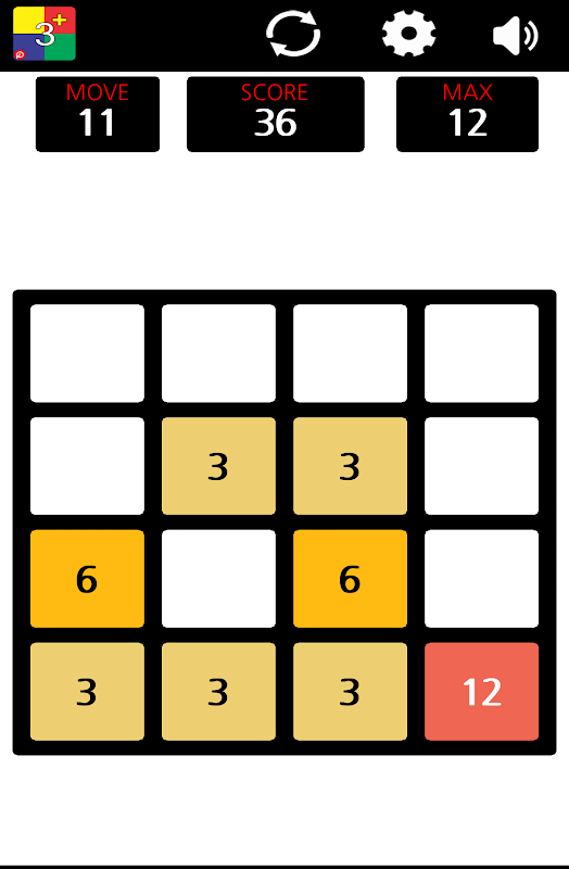 Same numbers add to each other and mingle to single box (3 + 3 = 6). Excited to watch number increasing by hitting each other by moving all direction.