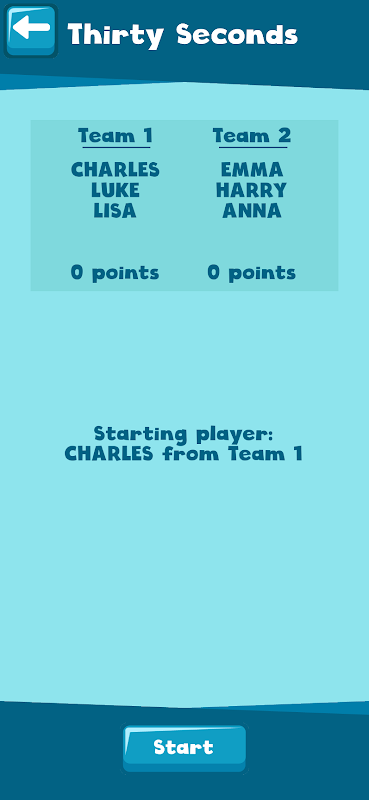 "30 সেকেন্ড" এর একটি খেলা 2 বা তার বেশি দলের সাথে খেলা হয়। একজন দলের সদস্য আধা মিনিটের মধ্যে অন্য দলের সদস্যদের কাছে 5টি শব্দ বা বাক্যাংশ বর্ণনা করার চেষ্টা করেন। প্রতিটি সঠিক শব্দকে এক পয়েন্ট দিয়ে পুরস্কৃত করা হয়। যে দল সবচেয়ে বেশি পয়েন্ট নিয়ে খেলা জিতে!