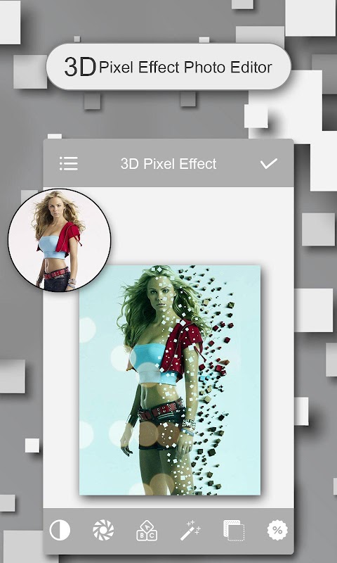 Edit your picture instantly with this awful powerful 3D pixel effect photo Editor Pics lab Dispersion app, that is one in all the simplest picture writing tool in android. `3D pixel effect photo Editor Pics lab Dispersion has type of bleeding pixels in varied designs like Photo Editors Shattering impact.