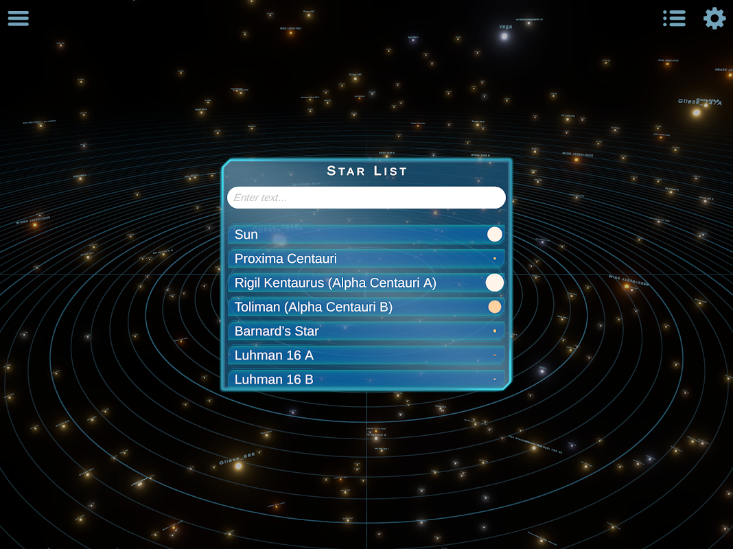 আমাদের সৌরজগতের চারপাশের 3D স্থান জুম করুন, ঘোরান এবং সরান, এবং আমাদের প্রতিবেশী তারা ব্যবস্থা সম্পর্কে জানুন। একটি তারা সম্পর্কে বিস্তারিত তথ্যের জন্য তার উপর ট্যাপ করুন, অথবা সুন্দর এবং আরামদায়ক অ্যানিমেশন সহ মহাকাশে ঘুরে বেড়ান।