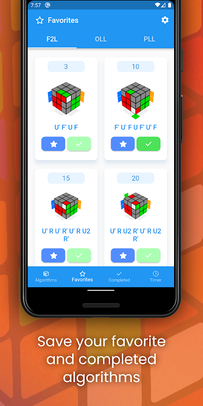 আমাদের বিশেষ অ্যাপ্লিকেশন দিয়ে 3x3 কিউব আয়ত্ত করুন। ফ্রিডিচ/সিএফওপি পদ্ধতির জনপ্রিয় অ্যালগরিদমগুলি শিখুন (ক্রস, এফ2এল [প্রথম দুটি স্তর], ওএলএল [শেষ স্তরের অভিযোজন], পিএলএল [শেষ স্তরের স্থানান্তর]) সুনির্দিষ্ট বর্ণনার মাধ্যমে।