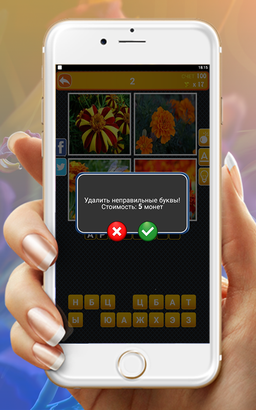 Правила очень просты: По 4 картинкам (фоткам) нужно отгадать объединяющее слово цветок. Посмотрите на картинки – проведите аналогию и угадайте слово. Если вы застряли на каком-то уровне – не беда, используйте подсказки "Удалить ненужные буквы", "Вставить правильную букву" или "Показать слово".