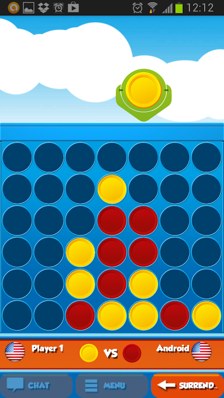 - স্থানীয় মাল্টিপ্লেয়ার: Singleplayer নিয়ম প্রযোজ্য. খেলা এক মোবাইল ডিভাইসের উপর গাওয়া হয়. কলাম লঘুপাত এবং এক লাইনে আপনার ডিস্ক চার সংযোগ দ্বারা যুক্তি দিয়ে একজন বন্ধু বীট চেষ্টা করুন.