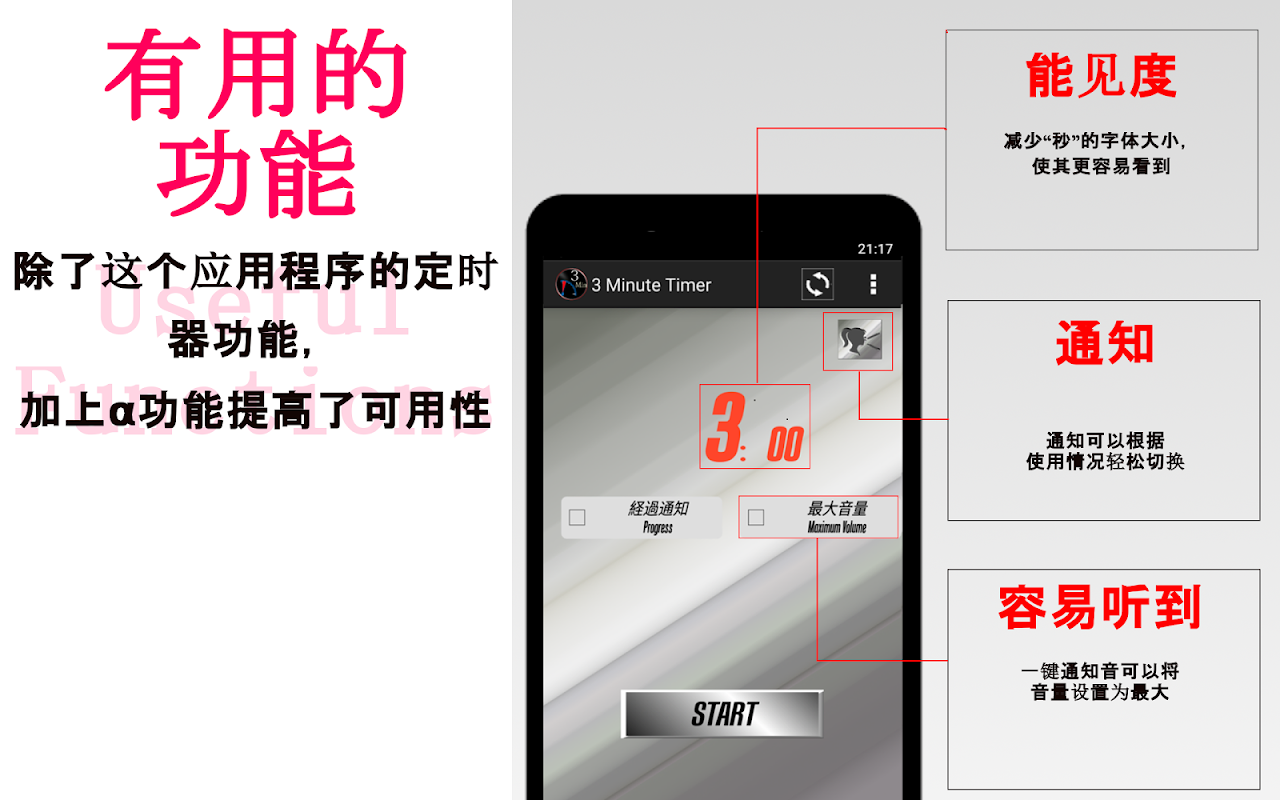 This application has a function to notify progress at 1 minute, 3 minutes, 5 minutes, 10 minutes, 15 minutes, 30 minutes, and 45 minutes ago