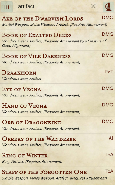 Here you will find a quick reference to every official item in DnD 5th edition.