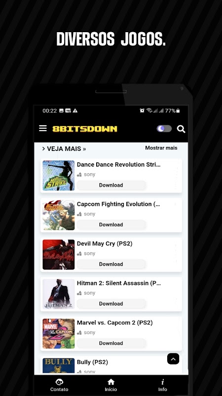 Obs.: 8Bitsdown কোনো rom/game সঞ্চয় করে না, অ্যাপে উপলব্ধ সমস্ত সামগ্রী ইন্টারনেটে উপলব্ধ, আমরা শুধুমাত্র একটি লিঙ্ক এগ্রিগেটর হিসাবে কাজ করি।