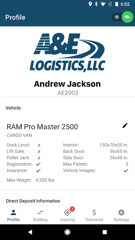 A&E লজিস্টিকস এলএলসি অ্যাপের মাধ্যমে রিয়েল টাইমে লোড খুঁজুন, বুক করুন এবং আপডেট করুন!