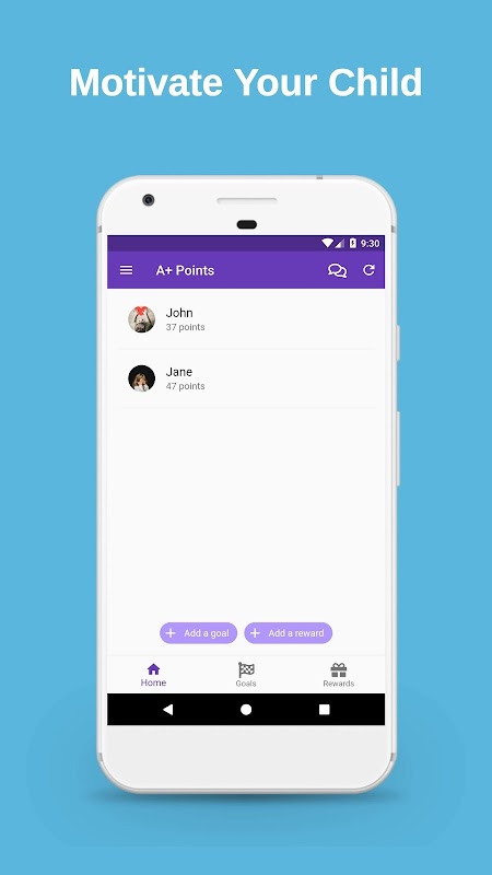 এ + পয়েন্টের সাহায্যে আপনি আপনার সন্তানের জন্য কাজ / কাজ নির্ধারণ করতে পারেন এবং পয়েন্ট এবং পুরষ্কারের সাথে তাদের অগ্রগতি রেকর্ড করতে পারেন (যখন তারা আপনার পছন্দসই পরিমাণে পৌঁছেছেন)। এই অ্যাপ্লিকেশনটি আপনার শিশুকে অনুপ্রাণিত করার জন্য উপযুক্ত। এটি ব্যবহার করা সহজ এবং সুপার মজাদার!