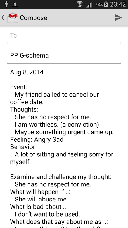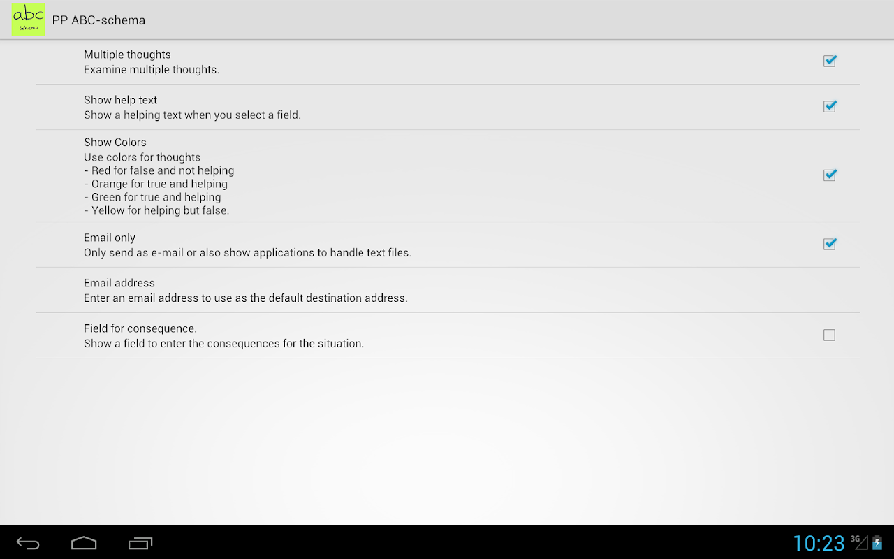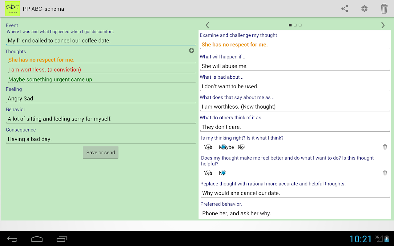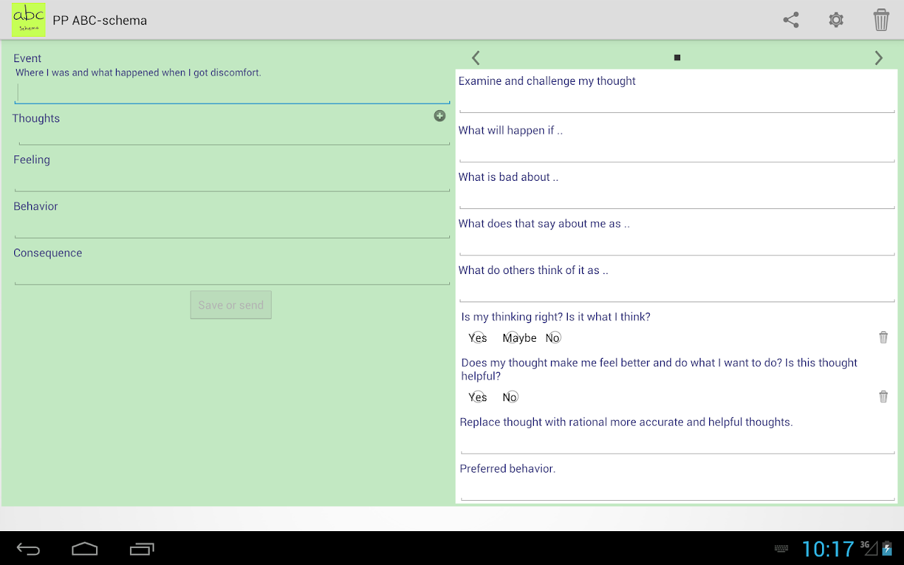 To create and learn from ABC schema s. Among others for cognitive behavioral therapy (CBT)
