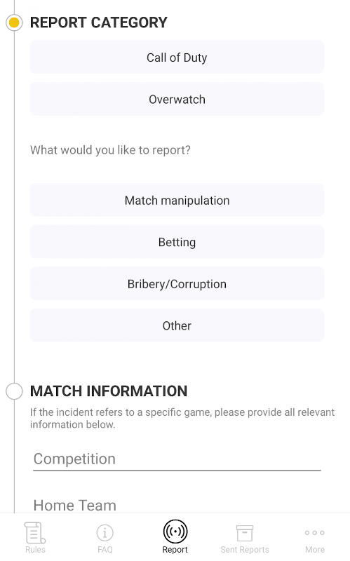 অ্যাক্টিভিশন ব্লিজার্ডে, আমরা খেলোয়াড়কে সমস্ত স্তরে সমস্ত লিগ এবং প্রতিযোগিতায় প্রতিযোগিতায় নিরাপদ এবং মজাদার পরিবেশের জন্য প্রতিশ্রুতিবদ্ধ। আমাদের সত্যতা প্রতিবেদনের অ্যাপ্লিকেশনটি ঠিক এটি করার জন্য ডিজাইন করা হয়েছে, আপনাকে প্রতিবেদন করার প্ল্যাটফর্ম সরবরাহ করে - নিরাপদে এবং সুরক্ষিত - এমন কোনও সম্ভাব্য পন্থা যা প্রতিযোগিতার অখণ্ডতাকে ঝুঁকিতে ফেলেছে। ঘুষ এবং দুর্নীতির ম্যাচ হেরফের থেকে শুরু করে অ্যাপ্লিকেশনটি আমাদের সমস্ত প্রতিযোগিতামূলক লিগ জুড়ে ন্যায্য খেলা রক্ষা করার জন্য দায়বদ্ধ স্টেকহোল্ডারদের সরাসরি গুরুত্বপূর্ণ তথ্য সরবরাহ করতে সঠিক প্রযুক্তি দিয়ে খেলোয়াড়দের সজ্জিত করার জন্য তৈরি করা হয়েছে।