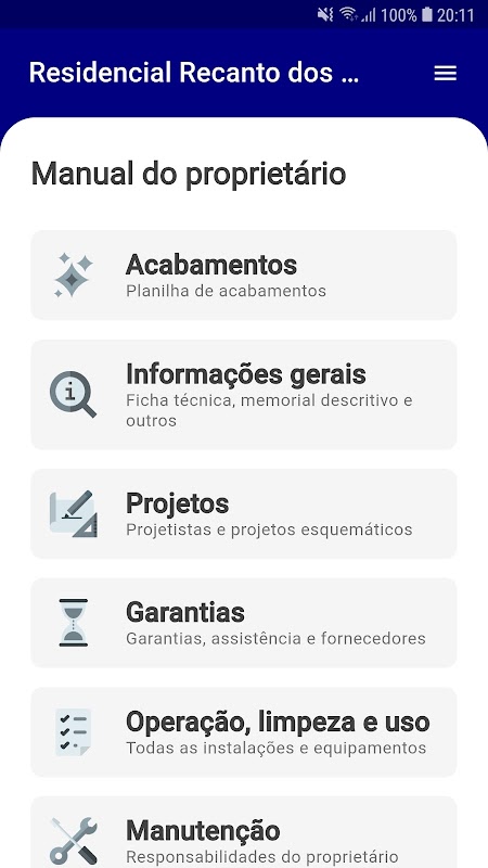 মালিকদের ম্যানুয়াল এবং সাধারণ অঞ্চলগুলির ম্যানুয়াল হ'ল কীভাবে সম্পত্তির যত্ন নেওয়া এবং কীভাবে রক্ষণাবেক্ষণ করা যায় সে সম্পর্কে মালিক এবং সুপারভাইজারকে গাইড করার একটি উপায়। আমাদের উদ্দেশ্য ছিল ABNT এনবিআর 14037, এবিএনটি এনবিআর 5674 এবং এবিএনটি 15575 মানের সাথে সম্মতিতে সাধারণ অঞ্চল ম্যানুয়াল এবং মালিকদের ম্যানুয়াল প্রস্তুত করা, ওয়ারেন্টি শর্তাদি অবহিত করা, রক্ষণাবেক্ষণ পরিচালন ব্যবস্থার জন্য একটি পরামর্শ উপস্থাপন এবং ব্যবহারকারীদের জন্য প্রযুক্তিগত সহায়তা যোগাযোগের অবহিত এবং বিল্ডিং ম্যানেজার, তবে মালিক এবং তত্ত্বাবধায়কের স্বাচ্ছন্দ্যের জন্য নতুন প্রযুক্তি সহ।