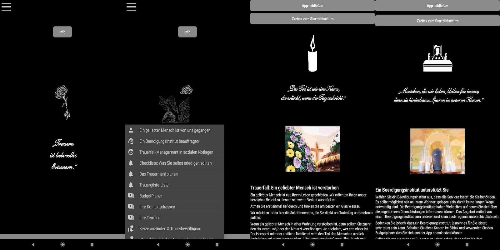 অনেক প্রয়োজনীয় আনুষ্ঠানিকতা এবং কার্যক্রমের একটি সম্পূর্ণ চেকলিস্ট রয়েছে যা আপনার শোক ব্যবস্থাপনার জন্য করা উচিত; স্ক্রিনের শেষে একটি টুলও রয়েছে যাতে আপনি নিজের ব্যক্তিগত এন্ট্রি করতে পারেন। চেকলিস্ট হল 38টি আইটেমের একটি তালিকা যা আপনি সবুজ টিক দিয়ে চিহ্নিত করতে পারেন (সম্পন্ন) সেগুলিতে দুবার ক্লিক করে। এইভাবে আপনি জানেন যে আপনি কোন পয়েন্টগুলি ইতিমধ্যে সম্পূর্ণ করেছেন।