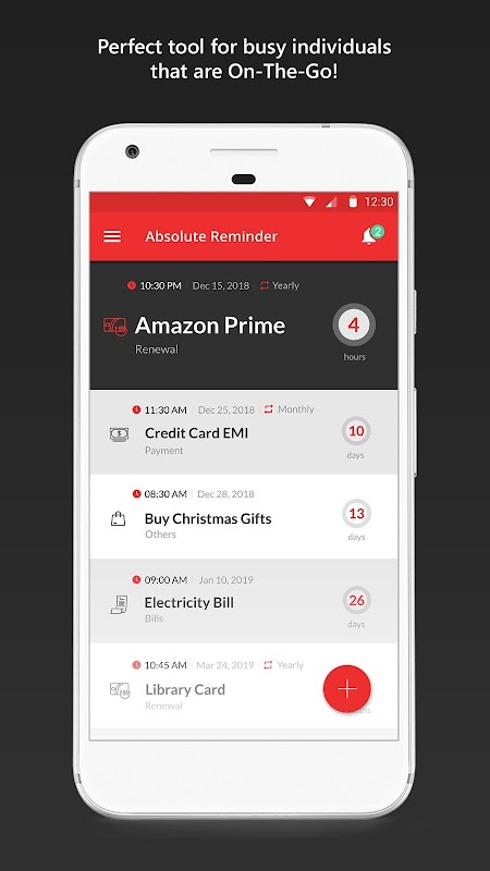 পরম অনুস্মারক অ্যানড্রইডের জন্য একটি বিনামূল্যে অ্যাপ্লিকেশন, যা আপনার সমস্ত গুরুত্বপূর্ণ তারিখ এবং একটি মসৃণ, মার্জিত উপায়ে গুরুত্বপূর্ণ কাজগুলির ট্র্যাক রাখে।