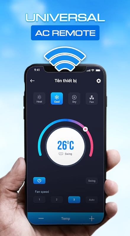 - মাত্র কয়েকটি ট্যাপ দিয়ে যেকোনো জায়গায় আপনার এয়ার কন্ডিশনার নিয়ন্ত্রণ করুন