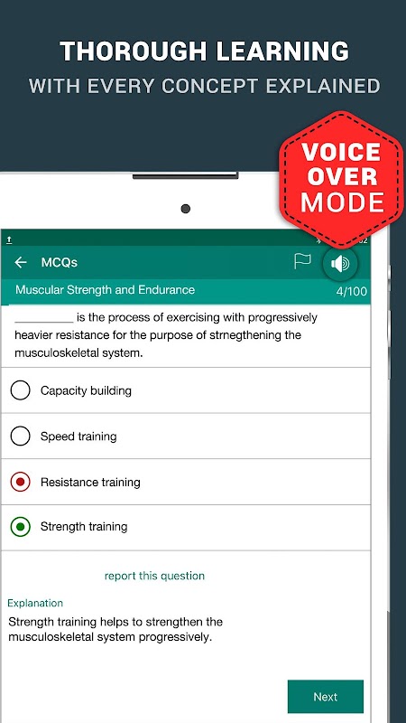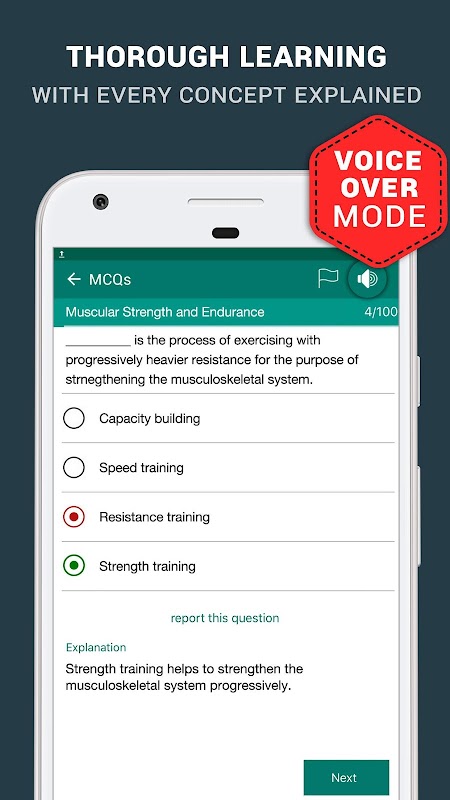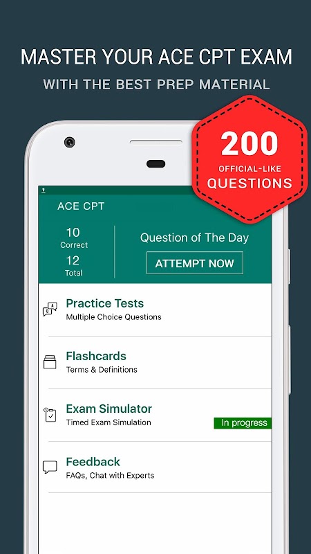 This ACE personal trainer exam prep app focuses on saving time and effort while maximizing the learning output. With our advanced knowledge of ACE personal trainer practice test content coupled with a series of learning inducers, this ACE personal trainer practice exam app makes sure that users can cover all the content they need for their ACE CPT Exam prep. Users can utilize our study modes for specific purposes, the ACE CPT Exam prep flashcards are designed to boost memory while the ACE personal trainer exam questions are designed to engage with the content. To further challenge their headway users can take the ACE personal trainer practice exam and measure their progress before the real exam.