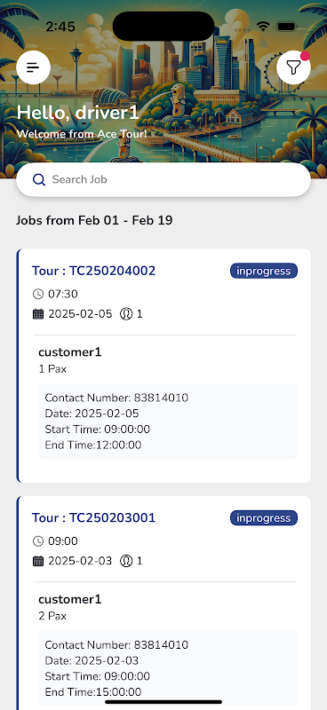 একটি ভ্রমণ সহচর অ্যাপ যেখানে ট্যুর গাইড এবং ড্রাইভাররা তাদের অ্যাসাইনমেন্ট চেক করতে পারে এবং গ্রাহকরা নির্বিঘ্ন অভিজ্ঞতার জন্য রিয়েল-টাইমে তাদের অবস্থান ট্র্যাক করতে পারে।