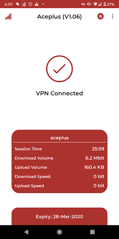 Aceplus is a lightning-fast app provide free VPN proxy service. Not need any configuration, just simply click one button, you can access the Internet securely and anonymously.
