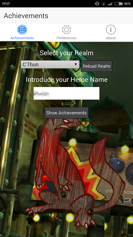 With this APP you can view your World of Warcraft achievements, and your friends too!. Everywhere and anytime. Only with your heroe name and your Realm.