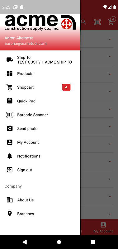 Acme কনস্ট্রাকশন সাপ্লাই ওয়েবস্টোর অ্যান্ড্রয়েড অ্যাপ্লিকেশন