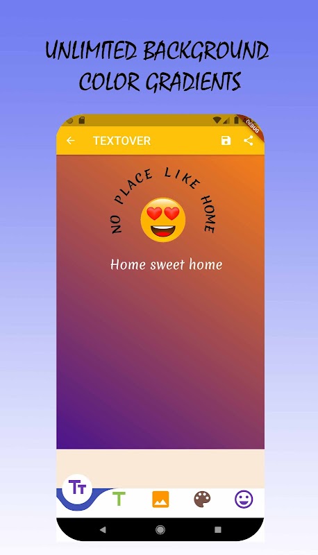 Curvy text over photo is possible and easy with this app. Artistic text can be created and added to photo and images. It equally enables you to create messages with text on photo and share with friends and family on social media. Insert your favorite quotes on photo and image and create typography stickers.