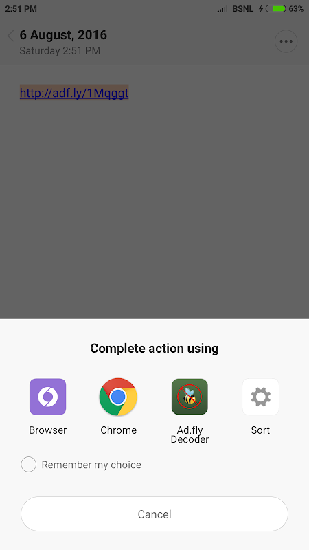 Tap on any adf.ly URL anywhere in your phone and then select adfly decoder as shown in screenshots, then URL will be decoded and you will be redirected to the decoded URL. After installing, you can test the app by clicking any test URL.