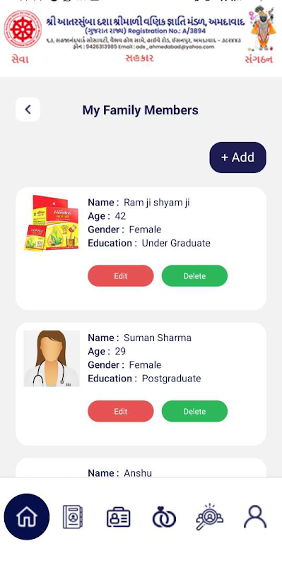 - পরিবারের সদস্যদের নাম, জন্ম তারিখ, শিক্ষা, ফোন নম্বর সহ সমস্ত বিবরণ সহ সদস্যদের পরিবারের তথ্য।