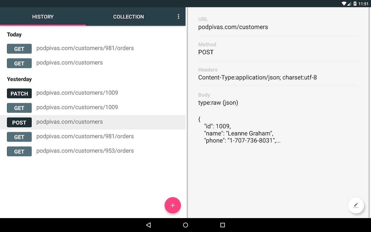 • Save a history of sent requests and user's collections